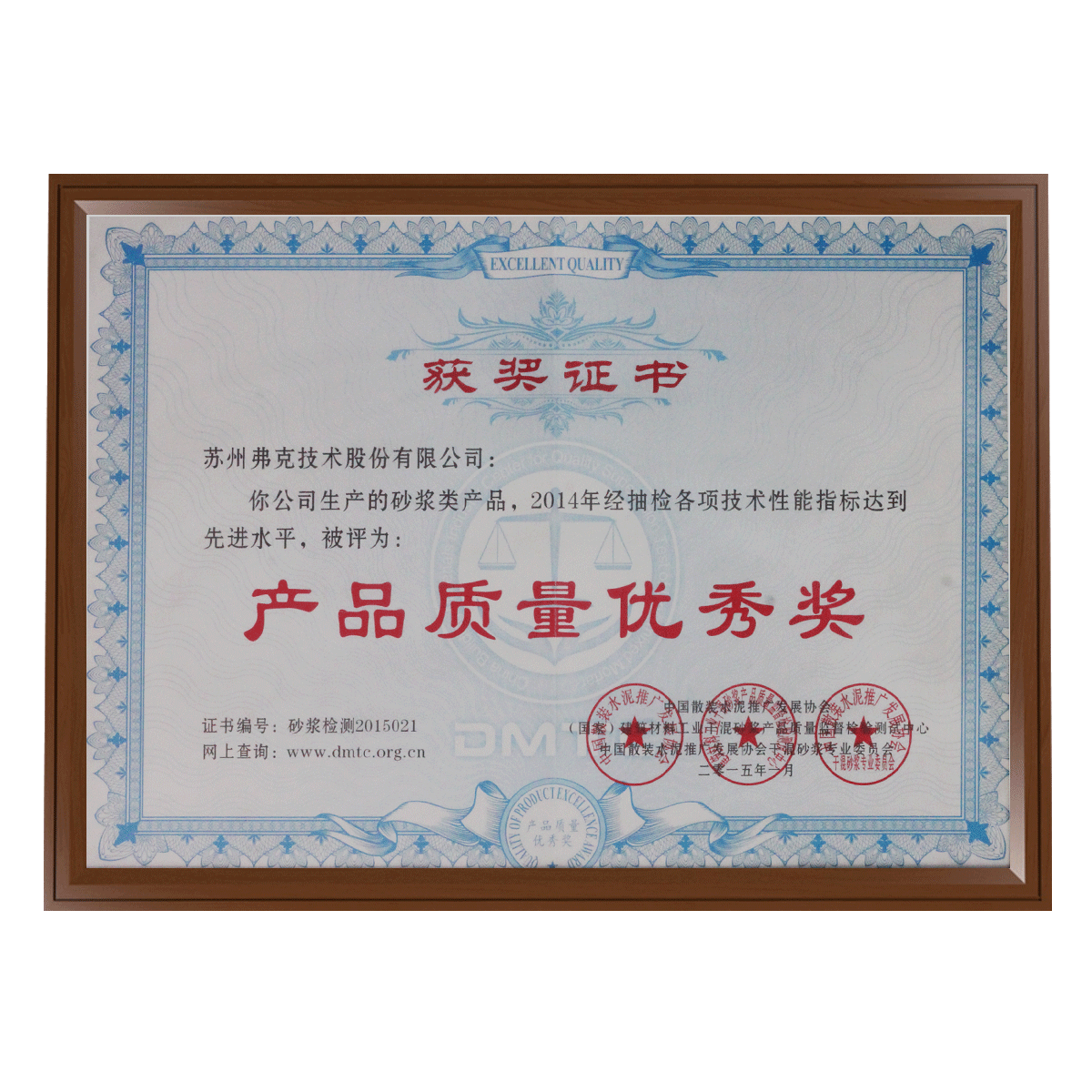 產(chǎn)品質(zhì)量?jī)?yōu)秀獎(jiǎng)證書(shū)